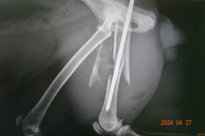 大腿骨を骨折したネコが来ました。